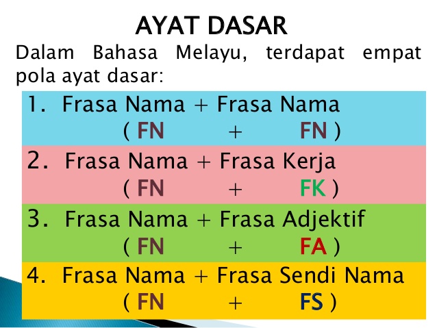 Dalam hal ini, kata sendi. Pola 2 subjek (frasa nama) predikat (frasa kerja) 1. Frasa nama + frasa adjektif . Frasa nama + frasa kerja ( fn+fk).